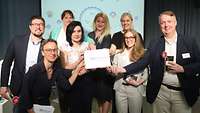 Beim Kick-off dabei: Gründungsmitglieder des Netzwerks – hier mit Sofie Geisel, Geschäftsführerin der DIHK Service GmbH, (vorn l.) und der Projektleiterin Rieke Albrecht (hinten r.)
